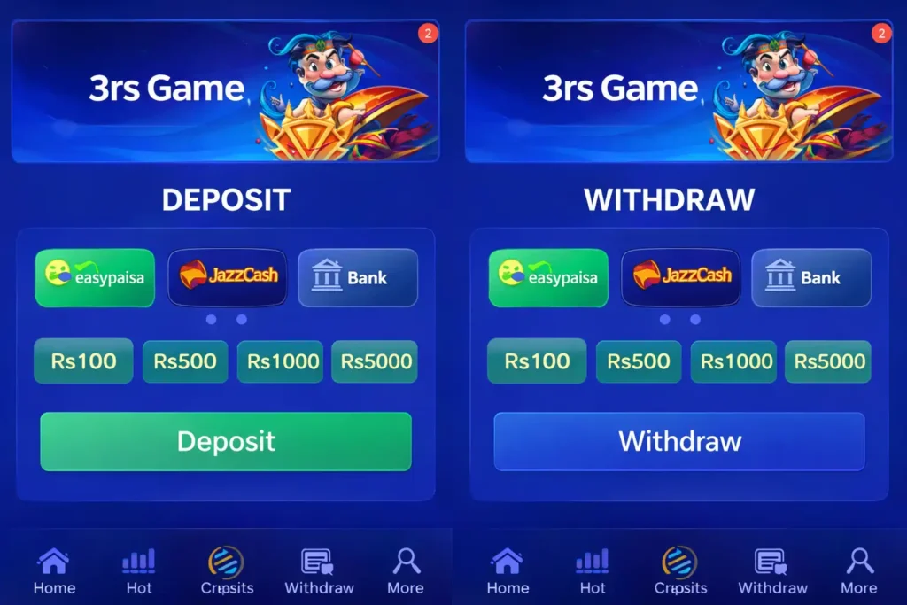 3rs Game APK has become noticeable among Pakistani mobile players because it combines simple gameplay with accessible payment options. Most people here prefer apps that do not require complicated steps. When a platform offers quick sign up easy navigation and familiar payment systems it naturally attracts attention.