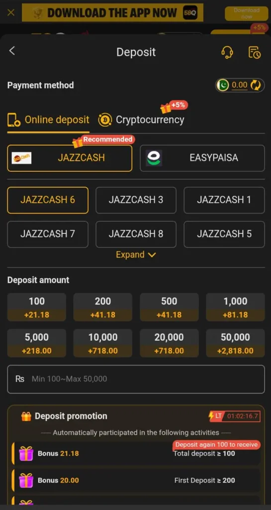 For Pakistani players one noticeable benefit is the support for local payment methods such as EasyPaisa and JazzCash. This makes adding and withdrawing money more familiar and manageable. Earning options exist but they depend on how users play and understand each game.