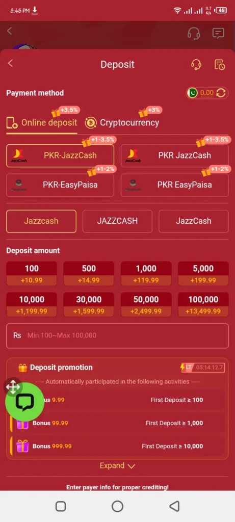 I noticed that beginners can understand the interface within a few minutes. Anyone above the legal age with a smartphone can use it. Many users connect their accounts with EasyPaisa or JazzCash for deposits and withdrawals. This makes transactions easier for local players.