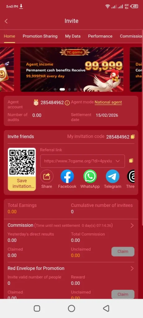 Earn rewards by inviting friends to join 7C Game.