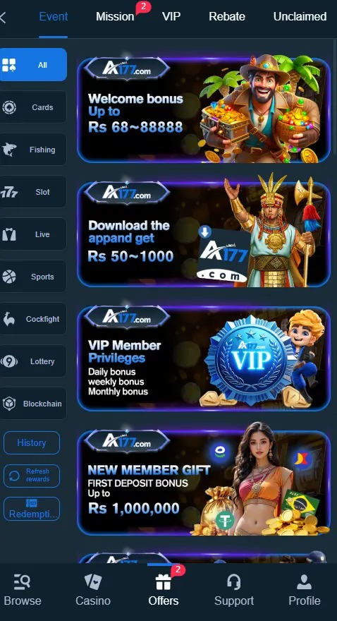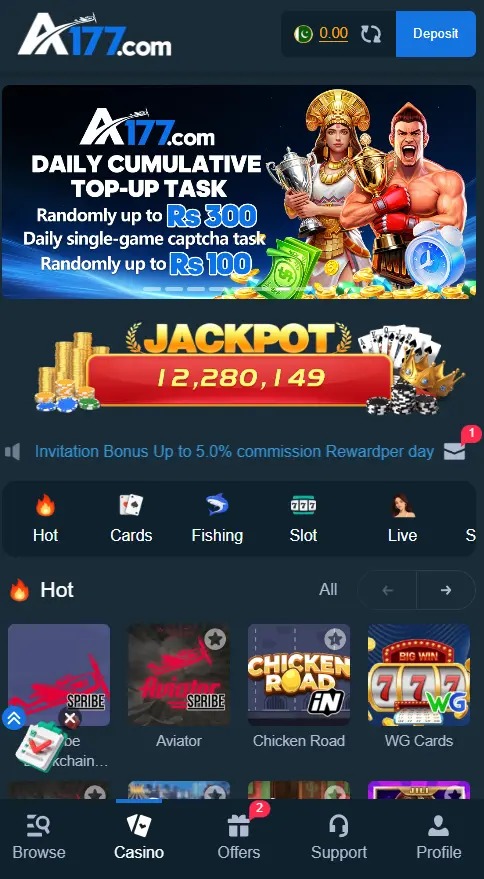 A177 supports EasyPaisa Jazz Cash and bank transfers which is very useful for Pakistani users. You don’t need international cards or complex payment methods. Deposits and withdrawals feel quick and simple. This local support makes the app much easier for daily users.