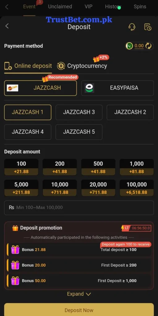 Yes EasyPaisa, JazzCash and bank transfers are supported. These methods make deposits and withdrawals easier for Pakistani users.