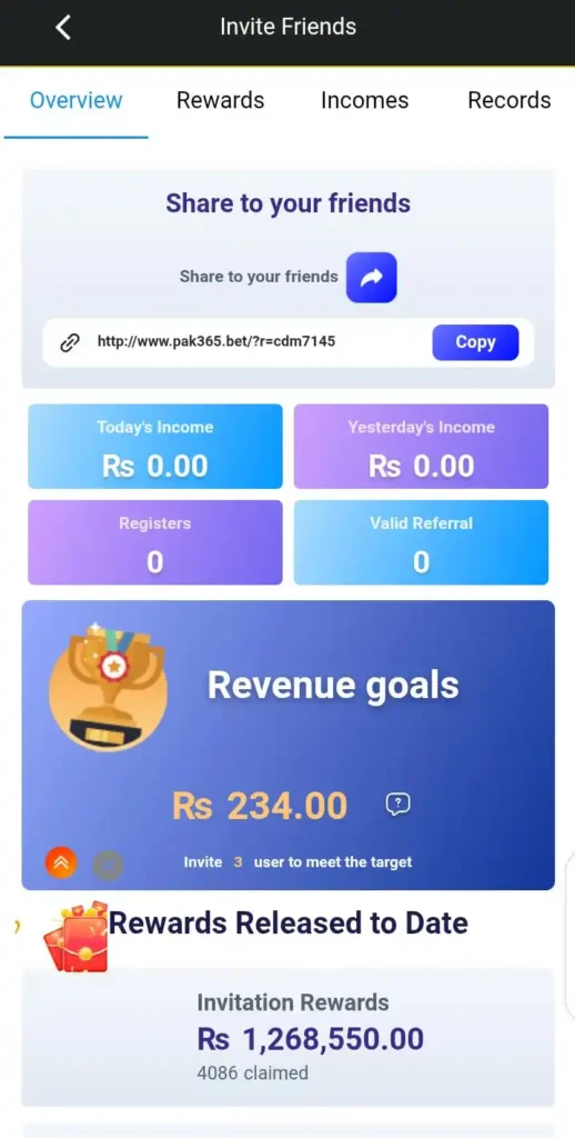 One thing I noticed is that this system is not just about playing it actually builds a steady earning flow over time. When you invite a friend you can receive up to Rs 1500 which feels like a strong reward for simple sharing. New users also get a small starting bonus which helps them try the app without pressure.