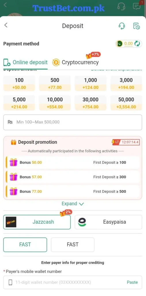 - Choose EasyPaisa, JazzCash, or bank.