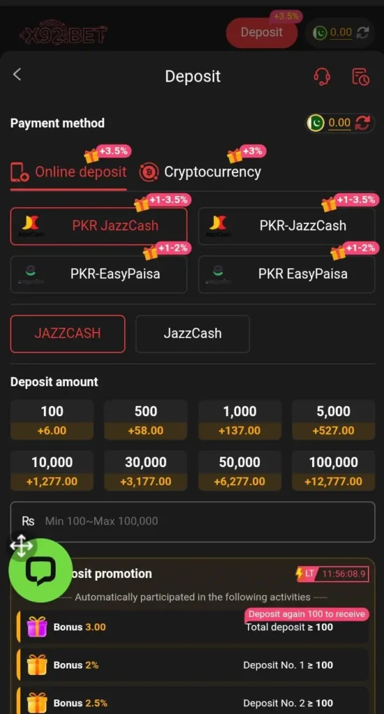 - Easy deposits using EasyPaisa and JazzCash in simple steps.